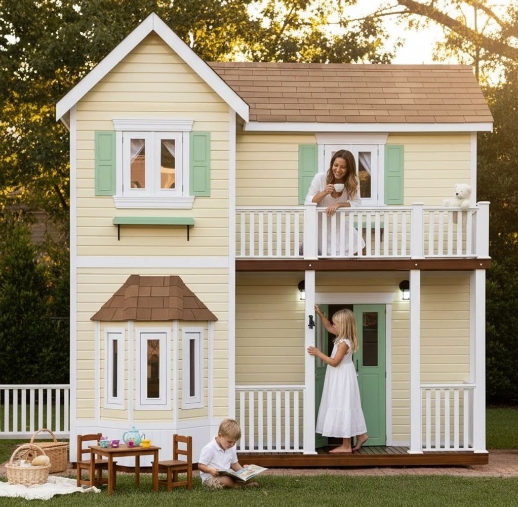 ¡Una casita super dinamica con resbaladilla, trepador y columpios!
